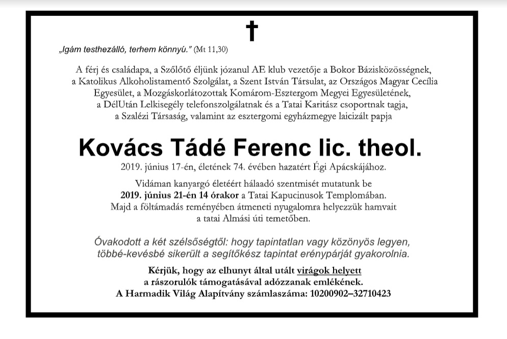 Bízva Istenben elfogadjuk Testvérem halálát, szeretettel emlékezünk Rá!
