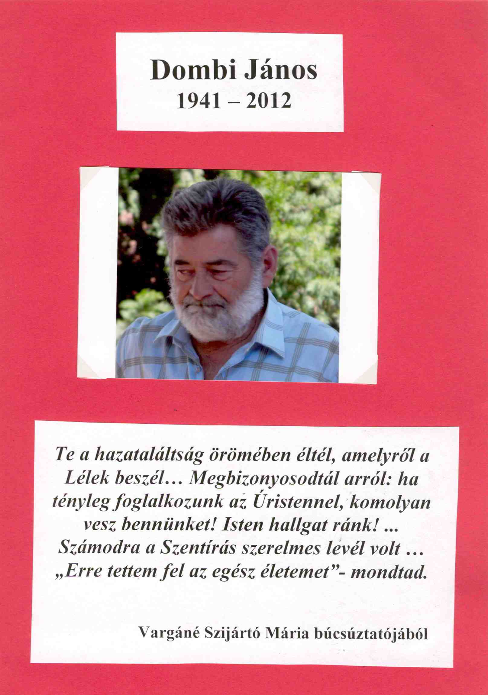 SzegheQ József (Totya)Szegheő József (Totya) testvérünket 2015. szeptember 16-án ölelte magához az Atya mennyei otthonában.