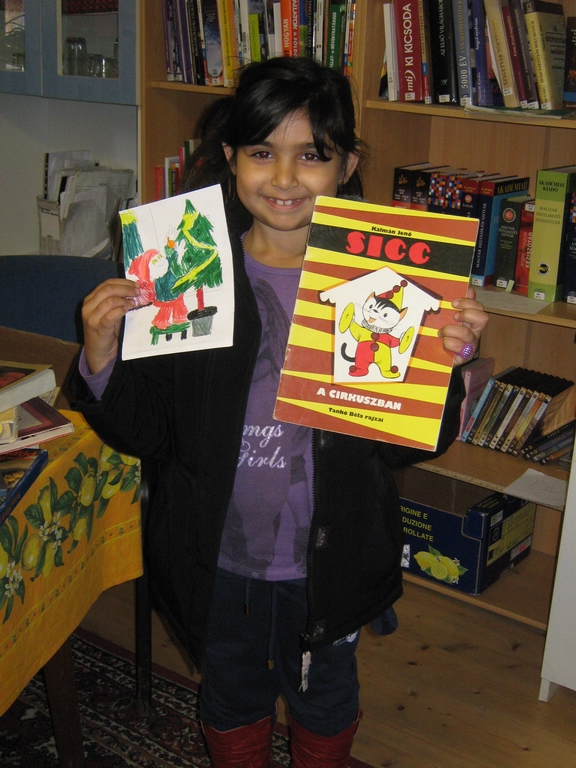 Utána a közösségi házban játszóházat szerveztünk a gyerekeknek, ahol volt színezés, gyöngyfűzés, puzzle rakás, könyvjelző, ajándék képeslap készítés stb. Praktikusan a falu összes gyereke eljött, s a szülők is ott csücsültek, beszélgettek velünk. Akinek sikerült valamit alkotnia, az választhatott egy mesekönyvet, amit a Bokor Nagytáborban gyűjtöttünk. A maradék 73 db-ot pedig az ottani könyvtárnak ajándékoztuk.